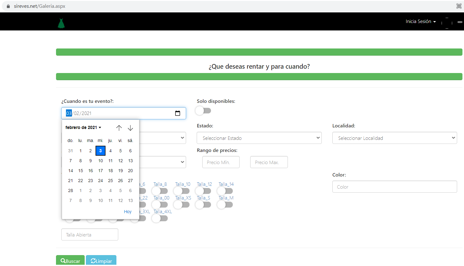 Existen validaciones que se hacen para que un cliente no pueda rentar un tuxedo con la misma fecha de evento, en resúmen un producto no se podrá rentar en cualquiera de los siguientes casos: