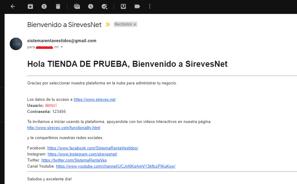Para el envío de correos de notas de renta, se utiliza el botón --> Enviar Nota.